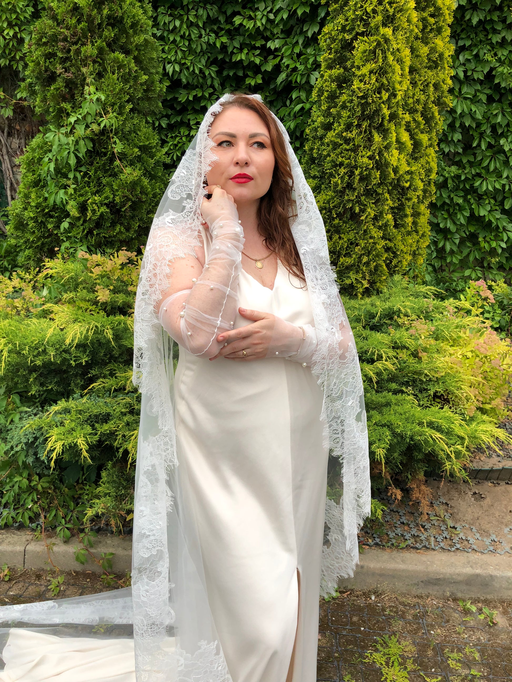 Floral Chantilly Lace Mantilla Veil – Light Ivory, Single Tier Wedding Veil
